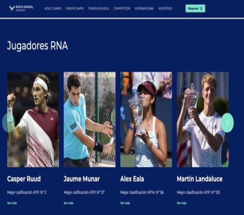 在RNA的栽培下,俄羅斯選手阿麗娜·科爾涅娃、西班牙新星蘭達(dá)魯斯贏得了大滿貫青少年組的冠軍,登頂過青少年世界第一。阿根廷的索拉納·謝拉因?yàn)榧t土招牌而選擇了這里,14歲就入學(xué)的阿卜杜拉·謝爾拜赫成為了約旦首個(gè)擁有ATP排名的選手,香港最成功的網(wǎng)球選手黃澤林同樣也在納達(dá)爾網(wǎng)校學(xué)習(xí)過……