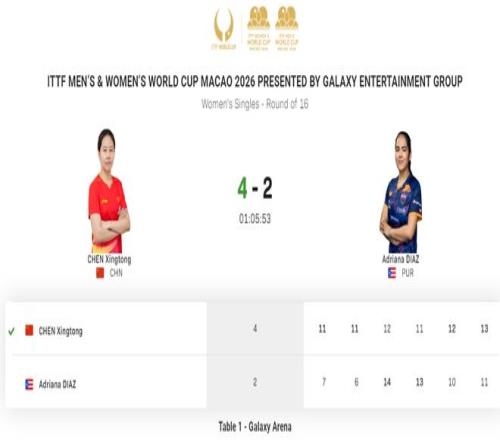 陳幸同在女單小組賽表現(xiàn)出色,兩場(chǎng)比賽以兩個(gè)3比0擊敗了安德烈婭·德拉戈曼和葉伊恬,輕松進(jìn)入16強(qiáng)淘汰賽。