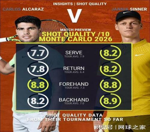 今晚的決賽,是今年紅土賽季的首個(gè)大師賽。在這片場(chǎng)地上,球員可以充分運(yùn)用旋轉(zhuǎn)、節(jié)奏、滑步防守和放小球戰(zhàn)術(shù)。從技術(shù)層面來(lái)看,阿爾卡拉斯移動(dòng)更快、更少依賴發(fā)球、放小球更具殺傷力,紅土適配度明顯更高;辛納作為“硬地大師”,卻在今年的蒙特卡洛大師賽上展現(xiàn)出極強(qiáng)的紅土適應(yīng)能力,他將硬地上的強(qiáng)勢(shì)底線進(jìn)攻平移至紅土,小球使用也頗具威脅。