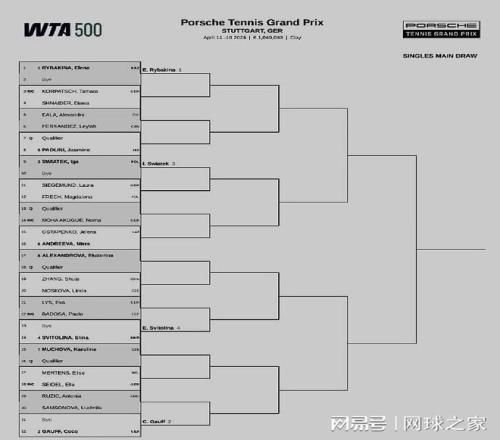 WTA500斯圖加特站:前四號種子是萊巴金娜、高芙、斯瓦泰克、斯維托麗娜。中國老將張帥首輪迎戰(zhàn)捷克人諾斯科娃。雙打方面,張帥/奧斯塔彭科作為頭號種子出戰(zhàn),蔣欣玗/徐一璠、楊釗煊/帕諾娃也將參賽。