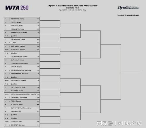 WTA250魯昂站:科斯秋克、科斯蒂亞作為前二種子領(lǐng)銜。萬卓索娃、卡薩金娜、斯蒂芬斯等名將出戰(zhàn)。