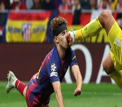 當(dāng)時亞馬爾送出傳中,費(fèi)爾明反應(yīng)極快沖上去頭球攻門,但在隨后的拼搶中與出擊的穆索發(fā)生了劇烈碰撞。