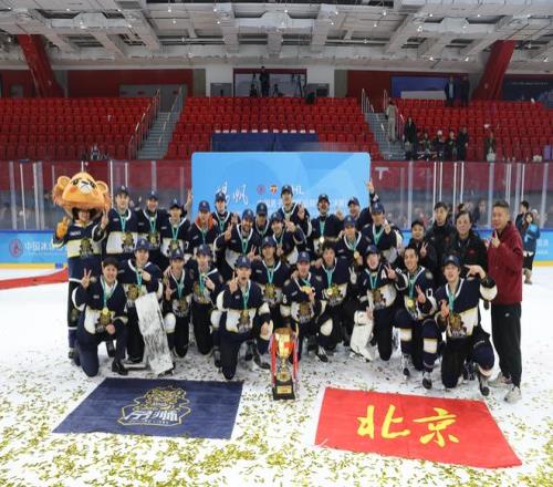 北京男冰蟬聯(lián)職業(yè)聯(lián)賽冠軍。 北京市冰球運(yùn)動(dòng)協(xié)會(huì)供圖