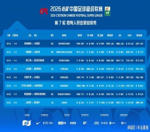 中超官方21日公布了第七輪裁判名單,遼寧鐵人與大連英博一戰(zhàn)將由曾獲中超銀哨獎的麥麥提江主哨。艾堃任視頻助理裁判。