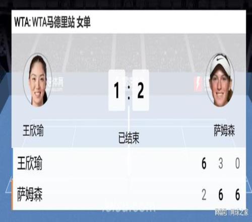 外界期待王欣瑜緊隨張帥腳步獲勝的消息終究沒有到來,中國一姐最終還是在馬德里被世界排名第171位的外卡球員薩姆森爆冷,上演了一輪游。