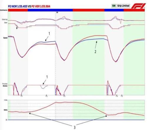 維斯塔潘在T13-T14之間獲得速度優(yōu)勢(shì)