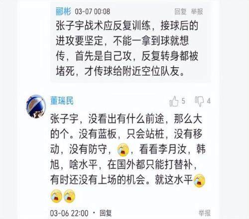 球迷說,張子宇這種毫無技術(shù)動(dòng)作的大個(gè)子太笨了,不符合現(xiàn)代籃球的要求,宮魯鳴該放棄她了。你們說呢?張子宇以后還能練得出來嗎?