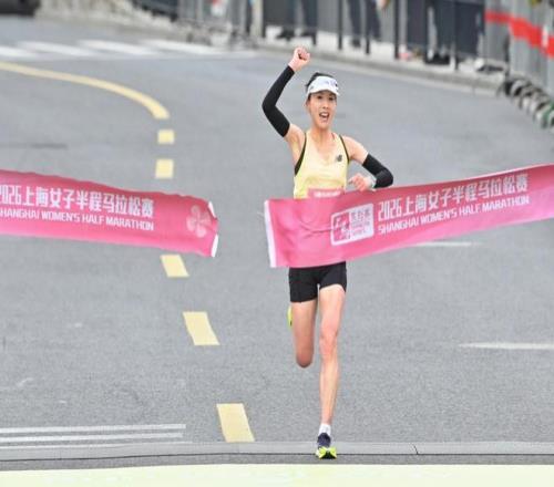 來自浙江的精英跑者潘紅在今年的比賽中第一個(gè)沖過終點(diǎn),最終完賽成績定格在了1小時(shí)12分52秒,這個(gè)成績也刷新了上海女子半馬自2019年辦賽至今的最好賽道成績。