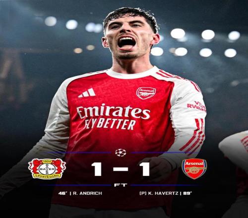 哈弗茨主罰一蹴而就,阿森納1-1驚險絕平對手,也為次回合加歸主場占得先機(jī)。
