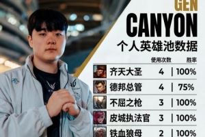 先鋒賽前瞻:Canyon9個(gè)英雄猴子勝率100%Junjia15個(gè)英雄