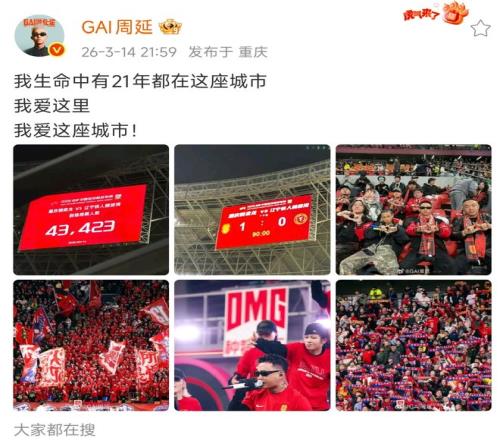 賽后,GAI也曬出現(xiàn)場(chǎng)觀賽照片!表白重慶!