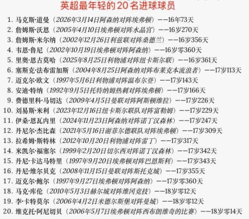 更絕的是,阿森納絕殺的兩個(gè)進(jìn)球,是由替補(bǔ)上場的4名球員分別完成的助攻和進(jìn)球。當(dāng)日16歲73天的道曼,成為英超歷史上最年輕的進(jìn)球者。