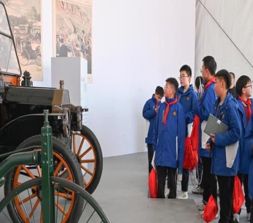 2026年3月13日,一群學(xué)生正在通過展覽了解“汽車百年發(fā)展史”。本文均為澎湃新聞?dòng)浾?吳棟 圖