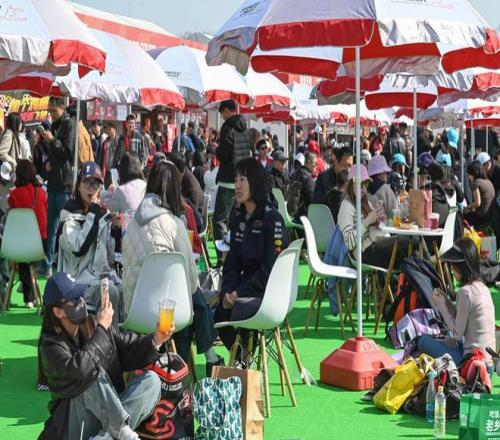 2026年3月13日,如潮般的游客在上賽場外的汽車文化節(jié)場地享受美食,等待下午F1賽開始。