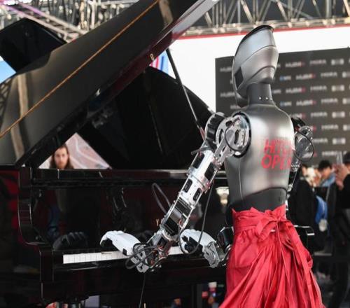 2026年3月13日,上海汽車文化節(jié)上,一個(gè)機(jī)器人正在彈鋼琴。