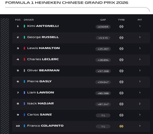 隨后的比賽沒有任何變數(shù)!安東內(nèi)利在2026年的中國大獎(jiǎng)賽第一個(gè)沖過終點(diǎn),創(chuàng)造F1歷史的新紀(jì)錄!成為史上最年輕的桿位奪冠車手!拉塞爾為梅奔實(shí)現(xiàn)一二帶回!法拉利雙雄漢密爾頓和勒克萊爾分列第三和第四。