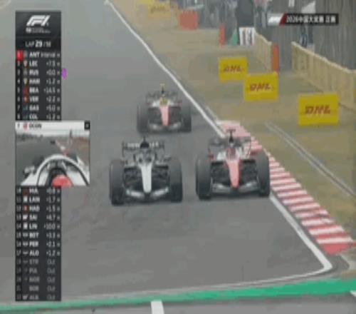 拉塞爾先后超越勒克萊爾和漢密爾頓,在第4圈時(shí)已經(jīng)來到了隊(duì)友安東內(nèi)利身后排名第二。