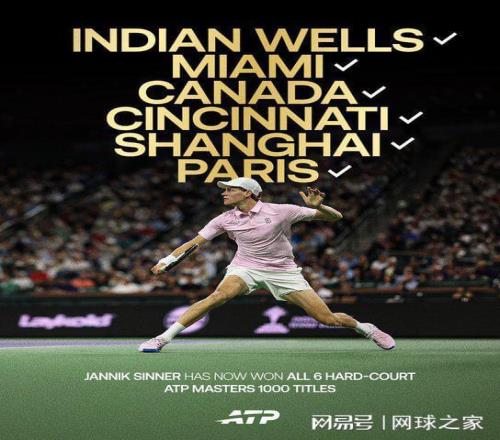 此前,辛納已經(jīng)在羅杰斯杯、邁阿密、辛辛那提、上海和巴黎的五站硬地大師賽奪得冠軍,今天在印第安維爾斯奪冠之后,辛納達(dá)成了全部六站硬地大師賽冠軍的紀(jì)錄。