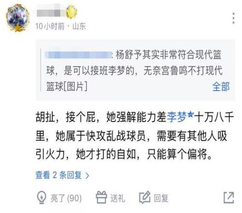 然而對(duì)于楊舒予在世預(yù)賽中規(guī)中矩的表現(xiàn),球迷并不買(mǎi)賬:“她強(qiáng)解能力差李夢(mèng)十萬(wàn)八千里,屬于快攻亂戰(zhàn)球員,需要有其他人吸引火力,她才打的自如,只能算個(gè)偏將”、“男籃有楊溢、崔永熙,現(xiàn)在又來(lái)個(gè)你,廣東盛產(chǎn)領(lǐng)袖啊”、“她姐在黃金一代只能算還可以,不能指望她們發(fā)生什么質(zhì)變,所以一點(diǎn)也不看好她們打強(qiáng)隊(duì)?!?/p>