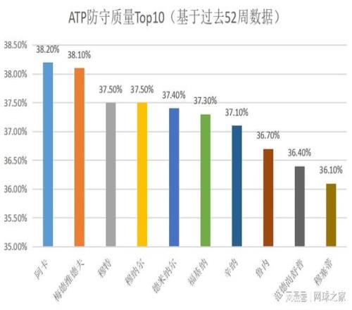 基于以上三大類指標(biāo),ATP列出了過(guò)去52周防守質(zhì)量Top10榜單,如下圖所示。