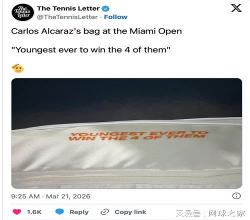 目前,阿爾卡拉斯的全部精力都放在邁阿密公開賽上。但這一充滿爭(zhēng)議的標(biāo)語(yǔ)也提醒著人們:在網(wǎng)球世界里,歷史不僅關(guān)乎紀(jì)錄,更關(guān)乎視角。(來(lái)源:網(wǎng)球之家 作者:火花)