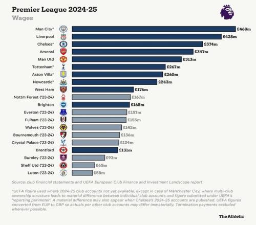 利物浦的工資支出在2024-25賽季首次突破4億英鎊。然而,其占收入的比例有所下降,降至六年來(lái)的最低點(diǎn)60%。