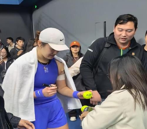 王曦雨在贏球之后看到母親在場(chǎng)邊,她一路小跑過(guò)去,和母親擁抱在一起,享受這幸福時(shí)刻。王曦雨隨后不停地給身邊的人簽名,母親將毛巾披在了王曦雨身上,擔(dān)心剛剛打完比賽,出了一身汗的王曦雨著涼。