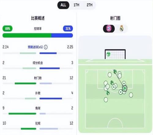 本場比賽雖然射門數(shù)是拜仁領(lǐng)先,不過絕佳機(jī)會上皇馬占優(yōu),預(yù)期進(jìn)球同樣是皇馬更多。考慮到拜仁的預(yù)期進(jìn)球有一部分是靠射門總數(shù)堆出來的,皇馬的進(jìn)攻質(zhì)量顯然更高。