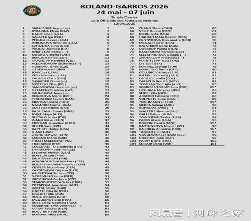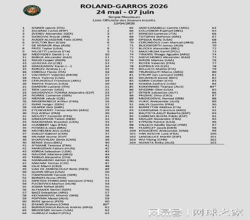 北京時間昨晚,今年的第二項大滿貫賽事——法國網(wǎng)球公開賽組委會官宣了男女單打正賽名單。男單方面:世界排名前104位的球員直接入圍,其中包括中國一哥吳易昺;另一位中國球員張之臻通過保護(hù)排名(第60位)入圍正賽。
