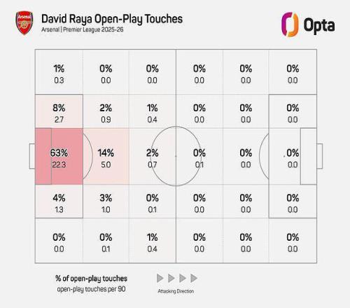 隨著阿爾特塔逐漸向英超新趨勢(shì)靠攏——直接打法,尤其是有了速度快的鋒線尖刀哲凱賴什和善于沖擊防線的新援埃澤與馬杜埃凱——拉亞的長(zhǎng)傳球出現(xiàn)得更加頻繁。