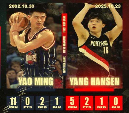 接著來聊楊瀚森首秀在進(jìn)攻端的表現(xiàn),雖然只是區(qū)區(qū)2分貌似不值得一提,但是萬事開頭難,頭三腳難踢。不妨可以看看當(dāng)年的NBA狀元姚明的首秀數(shù)據(jù),他上場10分36秒,投籃和楊瀚森一樣也是1中0,但是他連造犯規(guī)罰球的機(jī)會(huì)都沒有,沒有得分。只有兩個(gè)籃板球和1次蓋帽進(jìn)賬,一度被質(zhì)疑是“水貨狀元”,所以才有后面巴克利親驢屁股搞笑一幕出現(xiàn)。