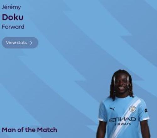 此役主場(chǎng)對(duì)陣?yán)锲郑装l(fā)出戰(zhàn)的多庫(kù)在下半場(chǎng)第63分鐘打入一球,幫助曼城3-0大勝對(duì)手。