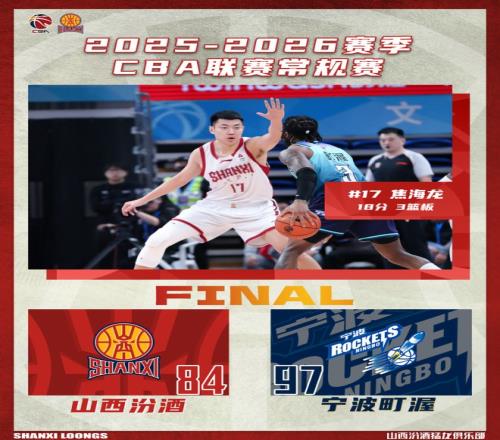 北京時間2026年1月13日19:35,2025-2026賽季CBA聯(lián)賽常規(guī)賽第14輪繼續(xù)進(jìn)行,山西汾酒客場挑戰(zhàn)寧波町渥。兩隊歷史上共交手9次,山西汾酒8勝1負(fù);本賽季兩隊交手1次,山西汾酒1勝0負(fù)。本場比賽,山西隊開局慢熱,進(jìn)攻端處理球不夠耐心,導(dǎo)致命中率偏低,末節(jié)追分時刻,對重點人的限制做得不夠好,最終落敗。全隊今晚的表現(xiàn)不夠積極主動,缺乏斗志,需擺正心態(tài),盡快調(diào)整。全場比賽結(jié)束,山西汾酒84:97不敵寧波町渥。