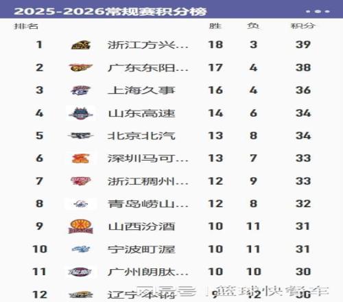 附:CBA積分榜最新排名