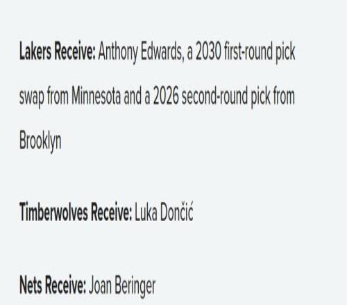 湖人得到:愛(ài)德華茲、森林狼2030年首輪簽互換權(quán)、籃網(wǎng)2026年次輪簽