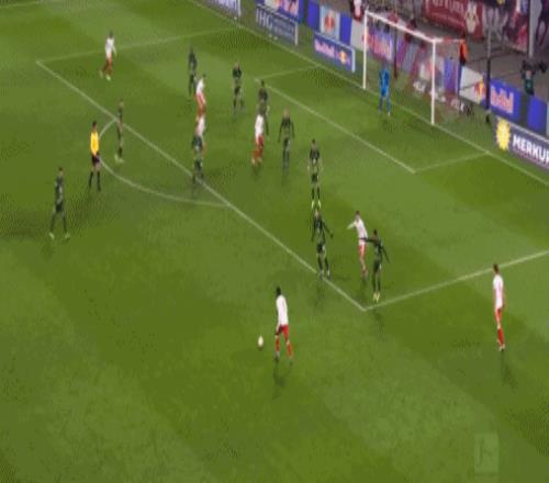 第88分鐘,格魯達(dá)禁區(qū)內(nèi)兜射破門,萊比錫2-2沃爾夫斯堡