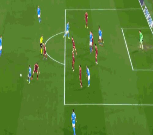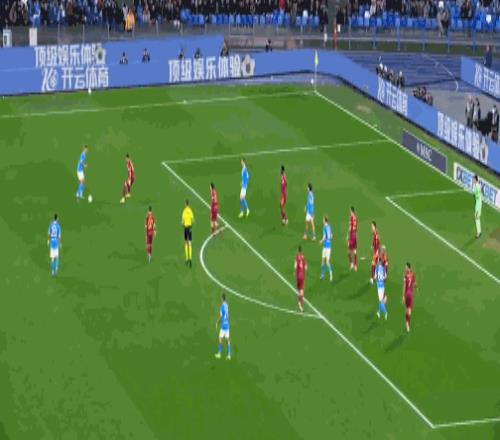 第40分鐘,扳平比分,斯皮納佐拉遠射,皮球折射入網(wǎng),那不勒斯1-1