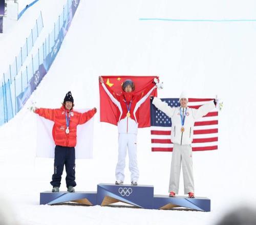 剛剛結(jié)束的單板滑雪男子坡面障礙技巧決賽中,蘇翊鳴以三跳最好一輪82.41分的成績獲得冠軍,為中國隊(duì)奪得了本屆冬奧會的第一枚金牌。同樣是在這片場地,10天前的男子單板滑雪大跳臺決賽,蘇翊鳴則以兩輪總分168.50分獲得季軍,為中國體育代表團(tuán)奪得本屆冬奧會首枚獎牌。