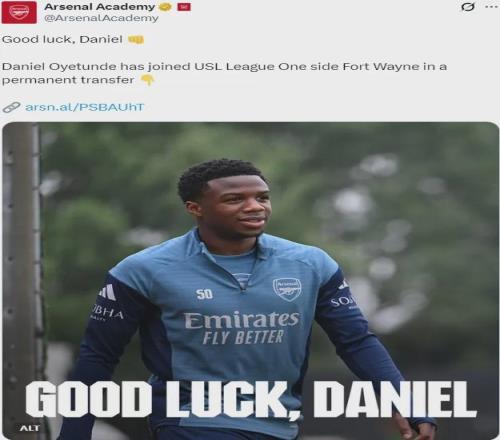 官方:阿森納宣布丹尼爾-奧耶通德轉(zhuǎn)會(huì)加盟了USL League One(美國職業(yè)足球的低級別聯(lián)賽)的Fort Wayne俱樂部。
