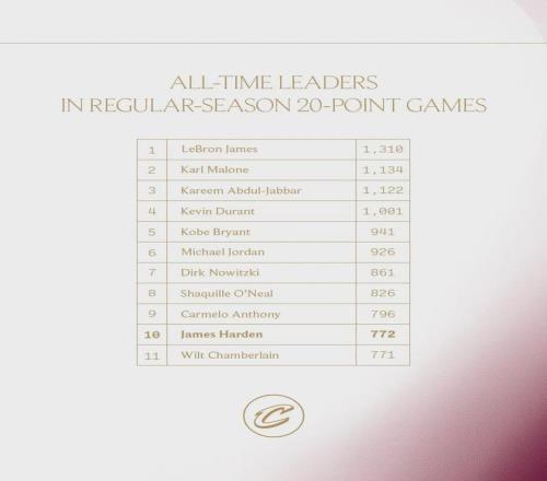 雷霆從一開場就拿出了高強度防守,騎士首節(jié)出現(xiàn)10次失誤。全場比賽,騎士17次失誤送給雷霆31分。哈登14投8中,三分7中3,罰球2中1,拿到20分5板9助1斷1帽5失誤。哈登生涯第772場20+,超過張伯倫排名NBA歷史第十。