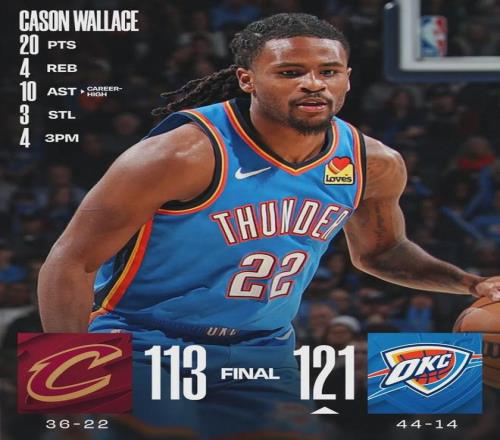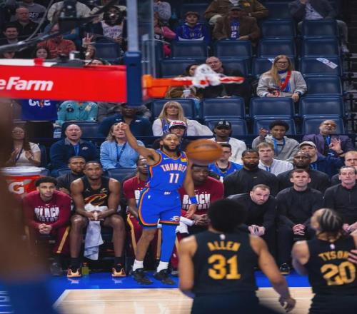北京時間2月23日,今天早上結(jié)束的兩場常規(guī)賽:騎士客場113-121不敵雷霆,7連勝被終結(jié);勇士主場128-117逆轉(zhuǎn)掘金。先說第一場,亞歷山大、杰倫-威廉姆斯和卡魯索等人休戰(zhàn),雷霆二隊出戰(zhàn),但他們?nèi)置新食^五成!