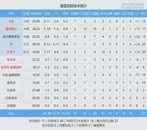 雷霆全隊三分球41中21,三分命中率高達51.2%,騎士三分球39中13,三分命中率33.3%。本場比賽四節(jié)比分如下(騎士在前):25-40、30-24、31-25、27-32。這是哈登騎士生涯的第一場失利,此前他在騎士的戰(zhàn)績是5勝0負。