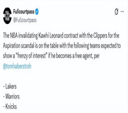 北京時(shí)間2月24日,據(jù)NBA記者湯姆-哈伯斯特羅報(bào)道,因此前涉及的陰陽合同問題,NBA有可能會(huì)宣布萊昂納德與快船的合同無效。一旦萊昂納德成為自由球員,預(yù)計(jì)湖人、勇士、尼克斯等球隊(duì)會(huì)瘋狂追求他。哈伯斯特羅在節(jié)目上的報(bào)道如下——