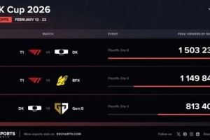 外媒統(tǒng)計(jì)2026LCK杯海外峰值:DK對戰(zhàn)T1第一T1對戰(zhàn)BFX第二