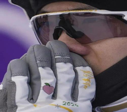 他們的浪漫,藏在賽場的每一個細節(jié)里,每一處都令人動容:王心迪的參賽手套上,一只繡著“桃”,一只繡著“心”,把對妻子的愛意,縫進每一次握杖、每一次起跳。