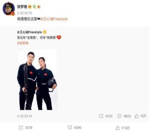 王心迪與徐夢桃。圖源:徐夢桃微博