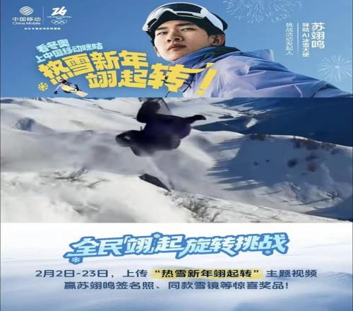 更具創(chuàng)新意義的是咪咕與蘇翊鳴的深度合作。1月14日,咪咕官宣蘇翊鳴成為首位“AI冰雪大使”,并且基于蘇翊鳴發(fā)起“熱雪新年翊起轉(zhuǎn)”挑戰(zhàn)賽,鼓勵(lì)用戶圍繞“轉(zhuǎn)”這一動(dòng)作進(jìn)行內(nèi)容創(chuàng)作,讓冰雪項(xiàng)目以更輕盈、普適的方式滲入大眾圈層。