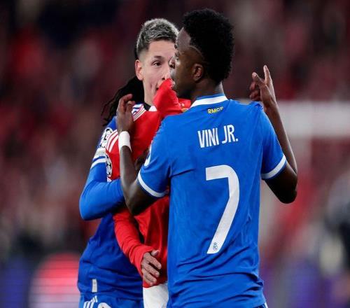 伯納烏南看臺(tái)球迷在賽前高舉“反對(duì)種族主義”橫幅聲援他。但隨隊(duì)出征的本菲卡球迷,在維尼修斯每次觸球時(shí)都送上漫天噓聲。