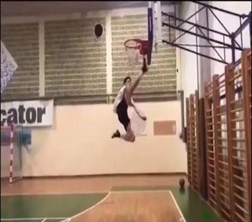 除了能跑,謝什科還有驚人的跳躍能力,那是他通過練習(xí)籃球獲得的技能。一段古早視頻記錄下14歲的謝什科高高躍起,將卡在籃框上的籃球踢下的畫面。