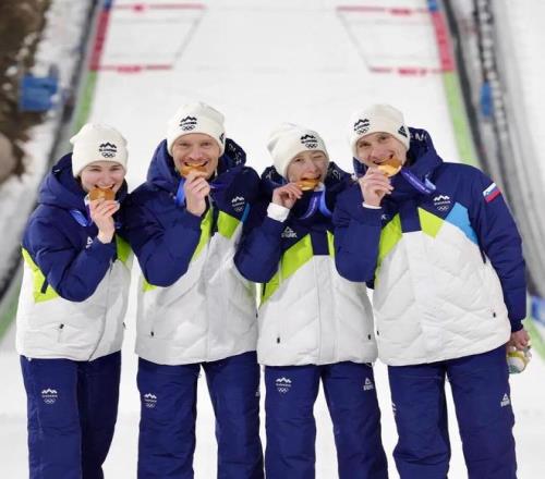 跳臺(tái)滑雪團(tuán)體斯洛文尼亞代表團(tuán)衛(wèi)冕冠軍